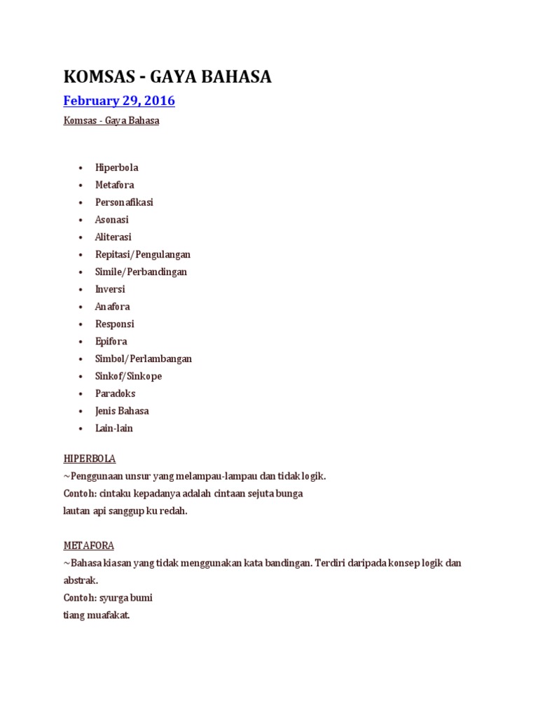 Majas anafora adalah majas repetisi yang menggunakan pengulangan kata frasa atau klausa pada bagian awal kalimat. Pelajar perlu lebih latihan berkaitan ââââââ. Contoh Ayat menggunakan Perkataan kubu dalam bahasa Melayu.
